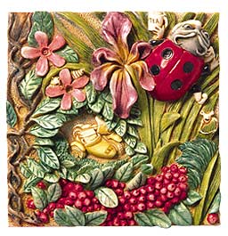 Our hero, Lord Byron, having finished feats of daring in the Marsh Marigold Wall of Doom (see Harmony Garden Chapter I), dismounts his motorcyle and enjoys a quiet cup of tea. He leaves his trademark suitcase with his motorcyle, as curious bugs peer out from the periwinkles and ivy, wondering about the contents of the suitcase. |