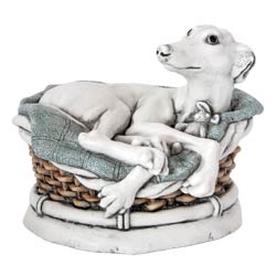 Contrary to popular belief, the greyhound does not spend its time racing about. In fact, it’s been said, "Gain a greyhound, lose a couch". So Peter’s greyhound, based on his friend’s dog Flash, is shown in its natural state - resting. Long-time HK collector, Catie Leicester, who has worked as an advocate for greyhound rescue for many years, is mentioned on the lid. HK House of Lords Dealer Lynn Trace, who told Peter about the Gulf Greyhound Track in Texas which finds homes for ex-racers, also receives mention. The interior of this 600 piece fixed edition box figurine portrays two track rabbits working out in an attempt to keep ahead of the chasing greyhounds. |