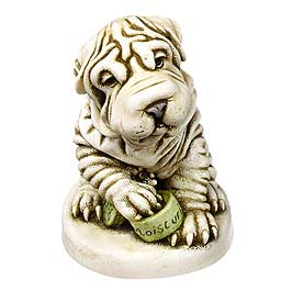 Although the design is clean and simple, there is the usual HK touch of humour with the tub of moisturiser. Do cosmetic manufacturers test their wrinkle creams on Shar-peis? These odd looking dogs survived a brush with extinction and strangely enough must have a black tongue if they are to be successful show dogs (a pink tongue is an instant disqualification). Inside the box is some liquorice, so our Shar-pei can have a black tongue whenever it is needed. What would they eat to keep themselves so wrinkled? Peter figures it's raisins. Finally, everyone knows the adage about dogs and their owners looking alike, so the name of a British comedic actor named Sid James made it into the interior of the box. He starred in most of the "Carry On" films and had a very wrinkled, but happy, face. |